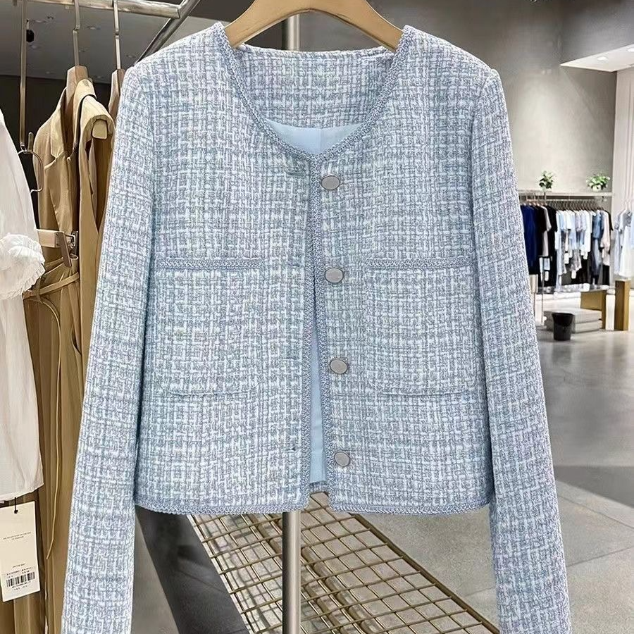 蓝色法式香风外套短款2025名媛气质新款简约轻奢高级小个子上衣
